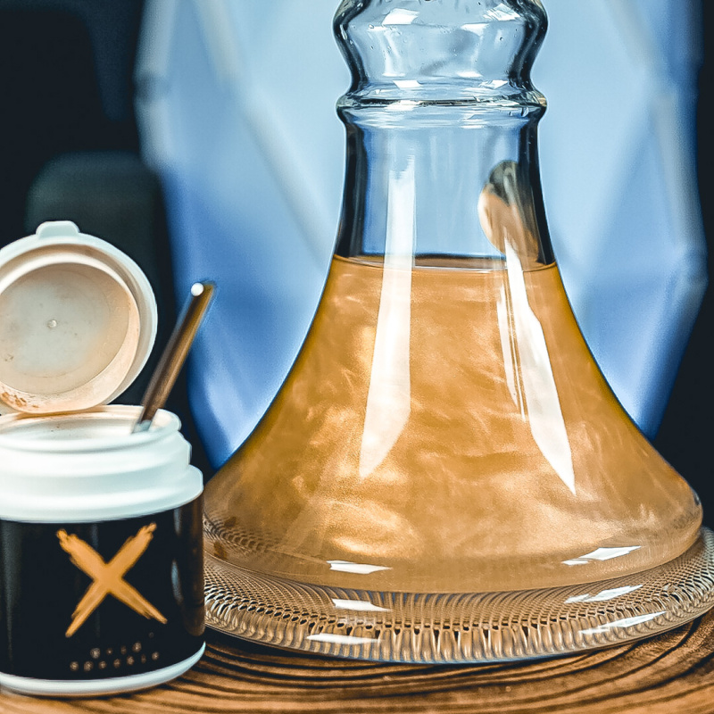 Barvící prášek XSchischa je zdravotně nezávadné barvivo. Stačí přidat čtvrt čajové lžičky prášku, aby voda ve váze dostala zářivý barevný odstín, a vy si tak můžete užít okouzlující podívanou. Barvivo navíc vytváří svým složením třpytivé vizuální efekty, připomínající přelévající se vlny na mořské hladině.