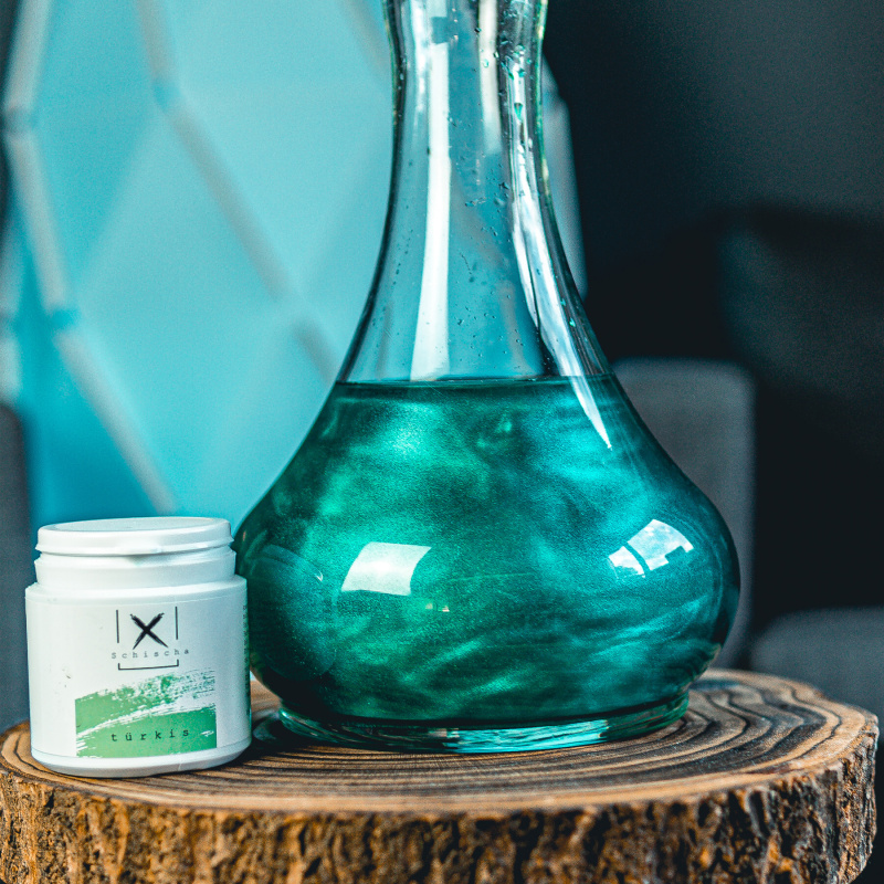 Barvící prášek XSchischa je zdravotně nezávadné barvivo. Stačí přidat čtvrt čajové lžičky prášku, aby voda ve váze dostala zářivý barevný odstín, a vy si tak můžete užít okouzlující podívanou. Barvivo navíc vytváří svým složením třpytivé vizuální efekty, připomínající přelévající se vlny na mořské hladině.