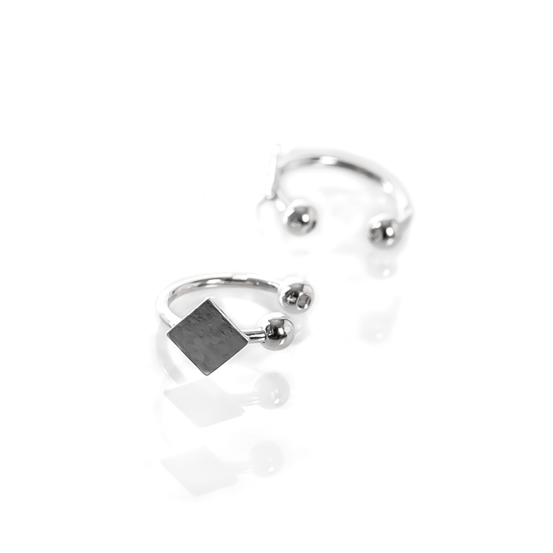 Elegantní stříbrné záušnice zdobené kosočtvercem na přední straně.