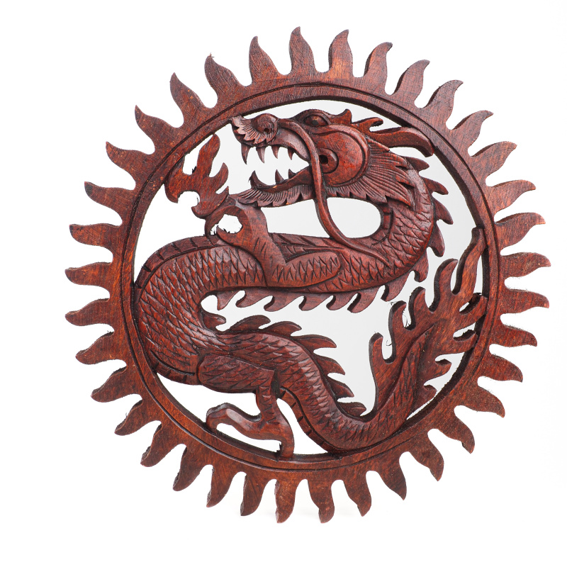 Popis produktu Závěsná dekorace dřevo Drak kruh 30 cm tmavá