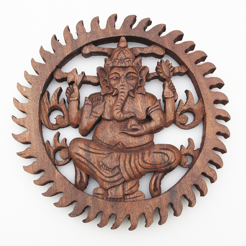 Popis produktu Závěsná dekorace dřevo Ganesha kruh 25 cm