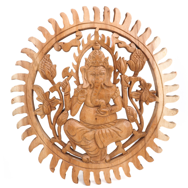 Popis produktu Závěsná dekorace dřevo Ganesha kruh 30 cm světlá