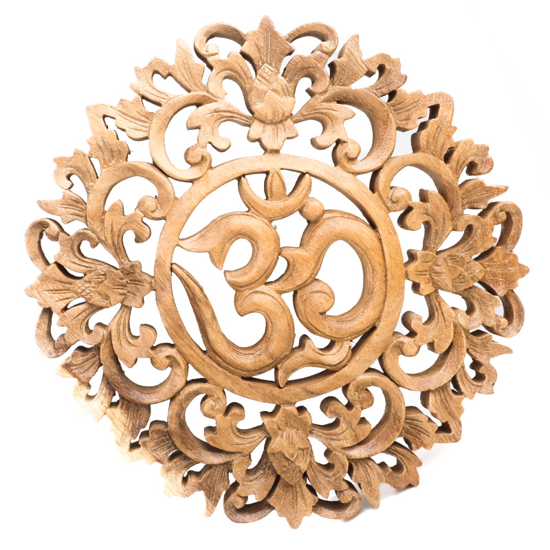 Popis produktu Závěsná dekorace dřevo Om zdobený kruh 30 cm světlá