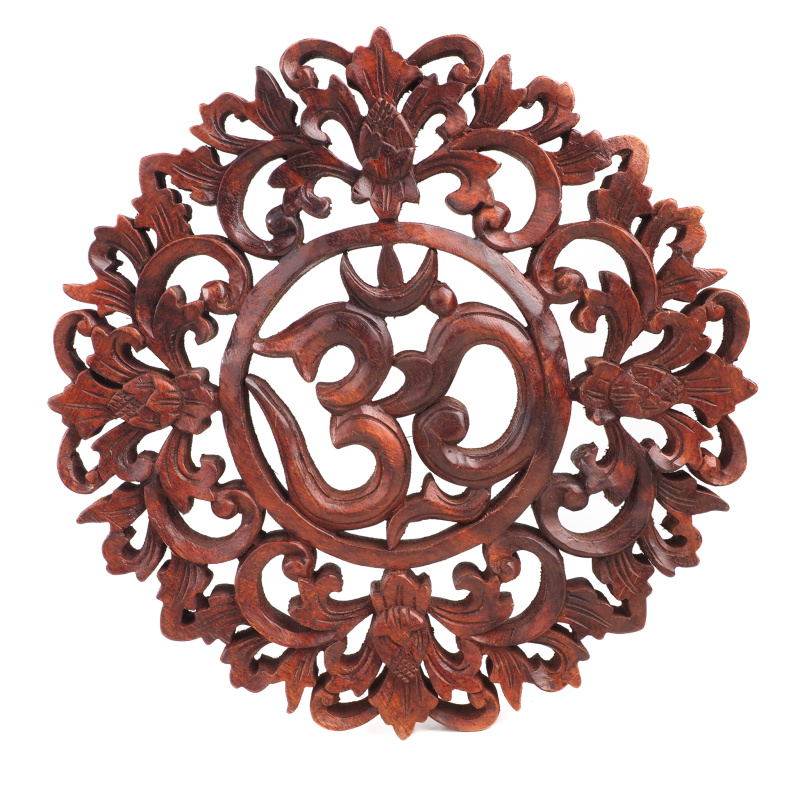 Popis produktu Závěsná dekorace dřevo Om zdobený kruh 30 cm tmavá