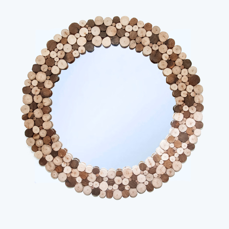 Obdivujte nejen sebe při pohledu do zrcadla. Exotickým dřevem orámované zrcadlo Round Plate Puzzle je zároveň velmi vkusnou interiérovou dekorací. Do vašeho domova navíc vnese právě díky výraznému dřevěnému rámu hřejivý dotek.