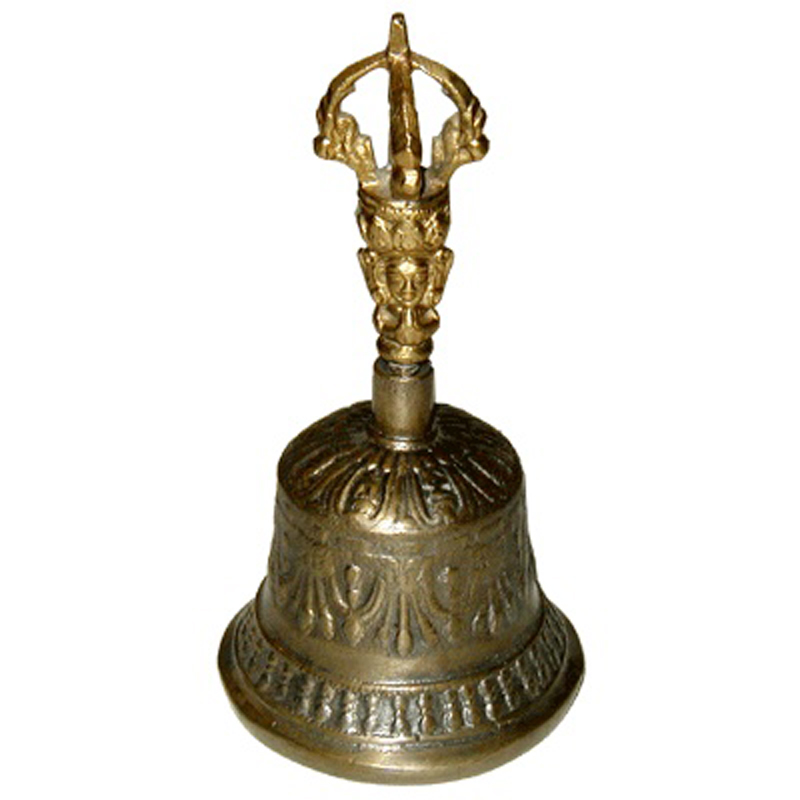 Nejprodávanější tibetský zvon - zvon malý, zdobený, s úchytkou ve tvaru dordže, 13,5 cm